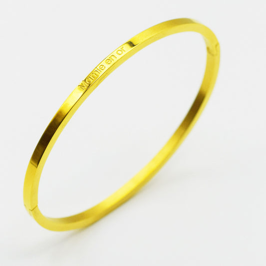 ACIER INOXYDABLE - Bracelet jonc gravé "Maman en Or"