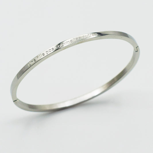 ACIER INOXYDABLE - Bracelet jonc FIN gravé "Une Fille Pas Comme Les Autres"