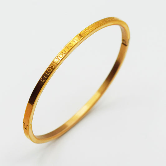 ACIER INOXYDABLE - Bracelet Jonc à Message "☾ I love you to the moon and back ☾"